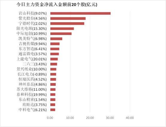 4.岩山科技主力资金净流入30.18亿元居首