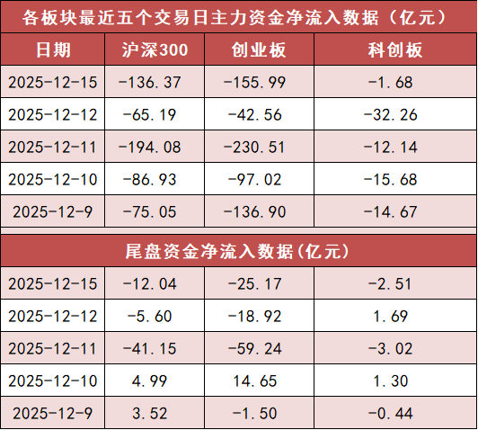 2. 沪深300主力资金净流出超136亿元 沪深300今日(12月15日)主力资金净流出136.37亿元,创业板净流出155.99亿元。