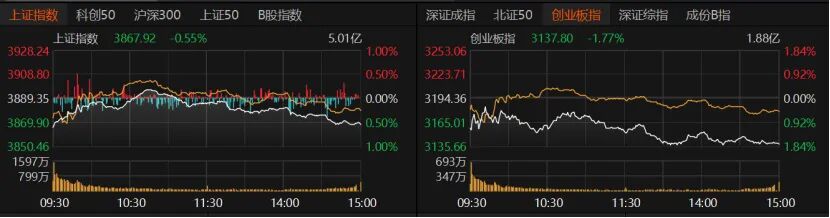 电子、通信、传媒、机械设备、计算机、医药生物、电力设备等板块跌幅均超过1%。但东方日升、昇辉科技两只电力设备个股“20cm”涨停。