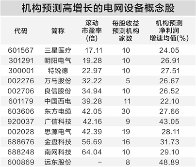 证券时报记者 梁谦刚 12月15日,2026年全国能源工作会议召开。会议显示,今年全国发电总装机预计超过38亿千瓦,同比增长14%,全社会用电量首超10万亿千瓦时(度)。今年7月和8月全社会用电量连续超过1万亿千瓦时,我国有力有效应对迎峰度夏电力负荷20次,超去年峰值考验。 中国电力企业联合会统计与数智部副主任蒋德斌表示,全社会用电量首超10万亿千瓦时,这不仅标志着我国用电规模稳居世界首位,更成为中国经济与能源发展进程中的重要里程碑。 国家能源局有关负责人表示,“十四五”以来,我国能源自给率从80%左右增至84%以上,建成全球最大的可再生能源体系,能源体量规模稳居世界第一。 从用电增量来看,人工智能快速发展带来用电需求激增。今年1~10月,我国互联网数据服务用电量同比增长43%。“算力的尽头是电力”已逐步成为全球共识,微软CEO纳德拉近期多次公开表示,当前人工智能产业面临的核心瓶颈为电力短缺。 花旗银行表示,在全球电力需求被AI数据中心、电气化和可再生能源并网大举推高的背景下,叠加美联储降息周期降低融资成本,助推电网基建长期项目投资。 中信证券指出,国内政策进一步指引和夯实了特高压、柔性直流输配电、数智化电网等环节的中长期机遇。同时,从中短期来看,输变电设备内外需景气共振,结构性需求持续显现,特高压、智能电网等环节有望迎来景气反转。 华泰证券指出,全国统一电力市场建设加速推进,预计“十五五”时期电网投资有望达到4万亿元以上,相比于“十四五”时期电网投资的2.8万亿元显著提升。其中,主网建设助力全国电网网架实现互联互通,是全国统一电力大市场搭建的重要支撑,将是未来重点建设方向。 据证券时报·数据宝统计,截至12月16日,A股电网设备指数年内涨幅达到31.28%,超同期上证指数17个百分点以上。电网设备概念股合计A股市值达到1.58万亿元,其中国电南瑞、思源电气、特变电工市值超1000亿元。 从个股来看,10只电网设备概念股年内累计涨幅超100%,包括华通线缆、智洋创新、太阳电缆、红相股份等。华通线缆年内累计涨幅近200%,排在首位。公司是我国电缆制造业中研发与工艺技术领先的企业之一,已取得美国UL、欧盟CE、德国TUV等多项国际认证,以及中国CRCC、CCC等国内强制性认证,是我国获UL认证大类最全的企业之一。 在未来增长潜力方面,根据Wind机构一致预测数据,有5家及以上机构评级的个股中,2026年、2027年净利润增速均有望超20%的电网设备概念股有12只。 机构一致预测今后两年净利润增速均值最高的是远东股份,达到48.89%。公司目前已实现全球领先人工智能芯片公司高速铜缆、智驾数据传输线、车载线、电源线及连接器等批量供货。 浙商证券认为,远东股份坚持智能缆网、智能电池、智慧机场一体两翼产业布局,传统业务持续改善向好,人工智能新业务有望贡献业绩及估值弹性。 上述12只高增长潜力的电网设备股中,最新滚动市盈率低于30倍的有3只,分别是三星医疗、明阳电气、特锐德。 三星医疗滚动市盈率为17.11倍,排在最低位置。今年前三季度,公司实现归母净利润15.28亿元,同比下滑15.85%。 华泰证券认为,三星医疗海外配电订单保持高速增长,后续延续性订单毛利率有望逐步回升。同时,公司海外用电持续突破,医疗业务逐步修复。伴随国内新标表启动招标,预计后续价格有望明显回升。 |