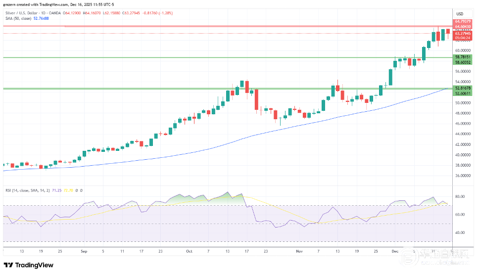【华通白银网12月17日】•尽管美国国债收益率不断下降,但金价仍在涨跌之间波动。 •白银未能在64.00美元上方结算。 •铂金测试1870-1880美元阻力位。 黄金