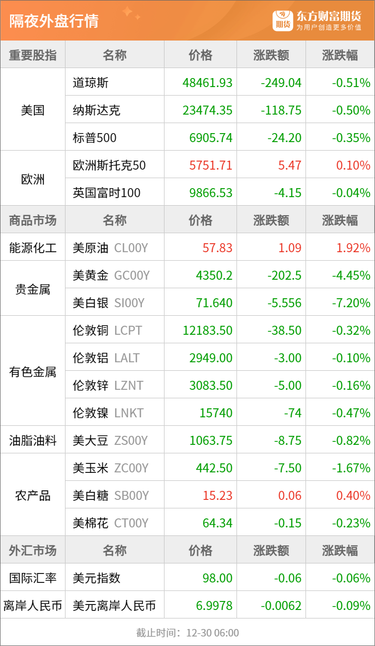 12月29日,A股缩量微跌,逾3000只个股收绿,但成交额仍在2.1万亿元上方。有色金属、电