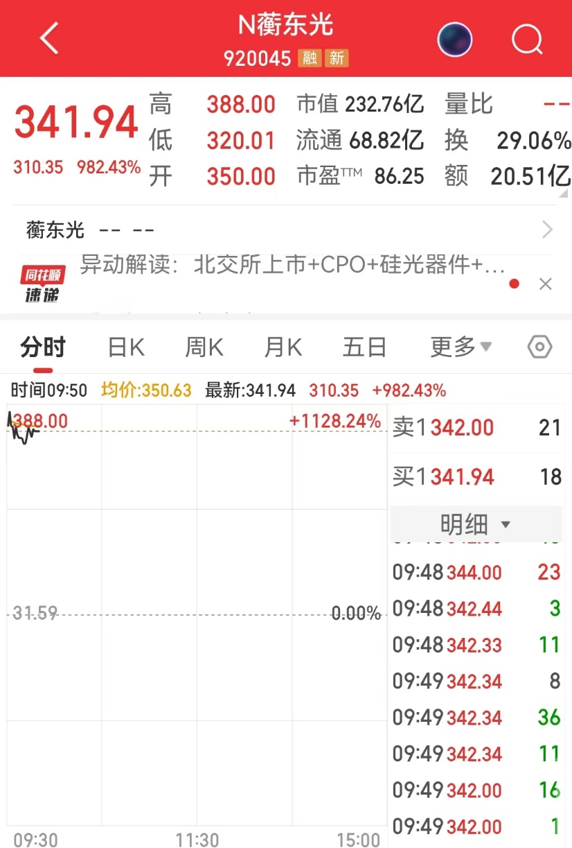 今日(12月31日)市场主要指数集体高开。有色金属、国防军工、传媒行业涨幅居前。 盘面上,贵金属板块普涨,湖南白银、恒邦股份、中金黄金等涨幅居前。工业金属概念中,江西铜业、精艺股份、云南铜业等涨超6%。其中,紫金矿业早盘最高涨超5%,公司今日发布年度业绩预告,因报告期内主要矿产品产量同比增加以及销售价格同比增加,预计2025年度实现归母净利润约510亿元至520亿元,同比增加59%至62%。 智谱AI概念走强,德生科技、凯文教育涨停,蓝色光标涨超10%。 新股速递:2只新股今日上市,N蘅东光开盘涨超10倍 今日共2只新股上市,分别是北交所的N蘅东光,创业板的N新广益。 N蘅东光开盘价350元,涨幅一度达1007.95%。公司聚焦于光通信领域无源光器件产品的研发、制造与销售,主要业务板块包括无源光纤布线、无源内连光器件及相关配套业务三大板块,主要产品包括光纤连接器、光纤柔性线路产品、配线管理产品等光纤布线类产品以及多光纤并行无源内连光器件、PON光模块无源内连光器件等内连光器件类产品。