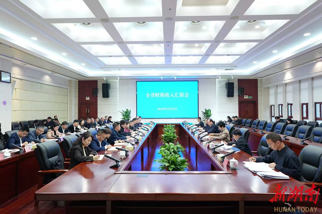 毛伟明讲话。 会上,省财政厅、省税务局、中国人民银行湖南省分行汇报了2025年全省财税收入、金融等情况。毛伟明对全省财税金融工作成绩给予肯定。他说,“十四五”以来尤其是今年来,面对国内外严峻复杂形势,全省财税金融系统紧扣职责优服务、推进改革有突破、防范风险守底线,为全省高质量发展提供了坚实财力保障。“十四五”期间,全省地方收入累计达1.7万亿元、较“十三五”增长16.3%,一般公共预算支出累计超4.6万亿元、增幅达24%。今年全省地方收入突破3500亿元、达到3507.1亿元,同口径增长2.5%;国省投入“三个高地”建设资金增长25%,省对市县财力性转移支付增长8.2%,民生支出占比达72%以上。