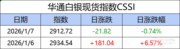 华通白银现货指数CSSI走势日报,今日指数2912.72,日涨跌-21.82,日涨跌幅-0.74%