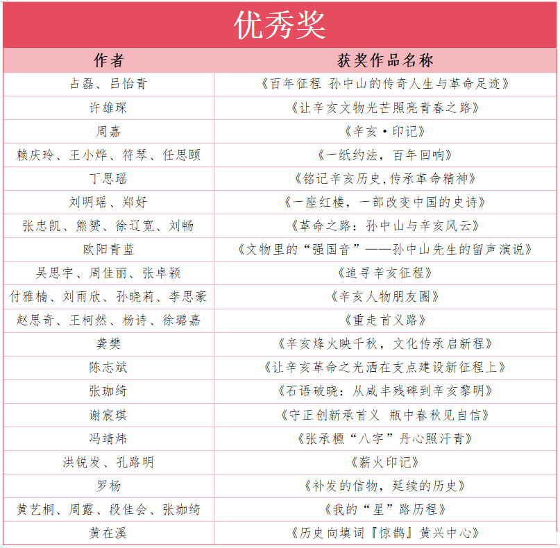 荆楚网(湖北日报网)讯(记者 叶辉 通讯员 黄玉霜 卢奕)近日,“百年辛亥 民族丰碑 ——‘孙中山与辛亥革命’文物传播大赛”完成评审工作,正式对外公布获奖名单。从全国征集的417件有效作品中,最终评选出一等奖3名、二等奖5名、三等奖10名、优秀作品奖20名,同时授予10家单位“优秀组织奖”称号。此前,大赛已完成优秀作品线上展示与点赞互动,累计吸引超110万网友参与。 多轮评审严选:专业把关+大众参与,确保作品质量 本次大赛自启动以来,严格遵循“征集—初选—线上展示—终审”四大阶段推进,兼顾专业性与大众认可度。前期对135件视频类、154件创意设计类、128件文字类作品进行初筛,重点围绕“史实准确性、主题契合度”剔除不符合要求的作品,最终筛选出84件优质作品进入线上展示环节。 线上展示期间,大赛搭建专属专题页面,按品类分区呈现作品,同步开放点赞功能。活动吸引全国超110万网友浏览互动,网友点赞数据作为专家终审的重要参考,实现“专业评审把控方向、大众反馈体现传播力”的双重保障。 终审阶段,大赛邀请5位来自历史、新闻传播、视听设计领域的权威专家组成评审团,围绕“历史内涵、创意表达、文化价值、传播潜力”四大维度综合打分,最终确定各奖项归属。评审团专家认为,获奖作品既坚守辛亥革命历史的严肃性,又用贴近大众的创新形式打破传统传播壁垒,真正实现了“让革命文物活起来、让辛亥精神传下去”的赛事目标。 获奖佳作亮点:多元表达+广泛参与,立体呈现辛亥精神 本次获奖作品紧扣“百年辛亥 民族丰碑”主题,以“形式丰富、主体多元、内容广谱”的鲜明特质,全方位激活辛亥革命文化的当代传播活力,彰显了革命精神传承的强大生命力。 表达形式多元,创意赋能辛亥文物传播。大赛征集的视频、创意设计、文字三大核心品类作品,涵盖纪实短片、互动 H5、国潮海报、历史评论、文创设计等多种形式。视频类作品巧用视听语言重现历史场景,创意设计类作品将辛亥文物元素与现代审美融合,文字类作品以故事化、情感化笔触解读历史内涵,多形式、多载体的创作表达,让辛亥精神传播更具感染力和穿透力,有效打破了传统历史文化传播的壁垒。 创作主体广泛,深度构建文物传播生态。本次大赛参与者既有高校学生、专业设计师、媒体从业者,也有机关单位网评员、社区文化爱好者等,形成了跨行业、多群体踊跃参与的创作生态。其中青年创作者占比超60%,成为传承辛亥精神的生力军。不同群体的独特视角与创作智慧,让辛亥革命文化呈现出多元解读维度,为革命精神的当代传承注入了鲜活力量。 作品内容多维,全景呈现辛亥文物价值。大赛作品素材不仅聚焦武汉地区辛亥革命博物院、武汉中山舰博物馆的馆藏文物与历史场景,更延伸至全国各地的辛亥革命纪念地、相关文物遗存及历史故事。从孙中山先生的历史足迹到各地辛亥志士的革命事迹,从代表性文物背后的细节挖掘到时代精神的当代诠释,内容既兼具覆盖广度,又注重挖掘深度,全方位、多角度构建起立体完整的辛亥革命文化传播图景,让百年辛亥精神在新时代焕发出新的光彩。 大赛组委会相关负责人表示,本次大赛不仅是一次辛亥革命历史文化的集中传播,更是革命文物活化利用的实践探索。未来将持续推动辛亥革命精神在新时代的传承,引导更多人尤其是青年群体,从文物与故事中读懂历史、坚定信念。