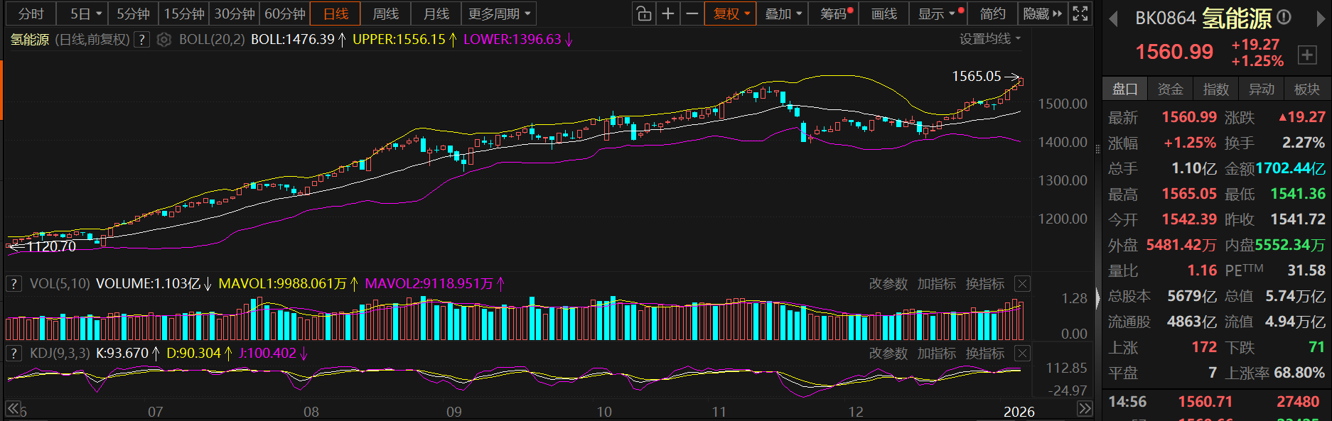 SMM 1月8日讯:自进入2026年以来,各省市轮番发布对氢能行业的支持政策,氢能源板块指数也迎来“开门红”,其指数录得连续四个交易日的上涨,截至1月8日,氢能源指数盘中最高上探至1565.05的高位,刷新其板块上市以来的历史新高!