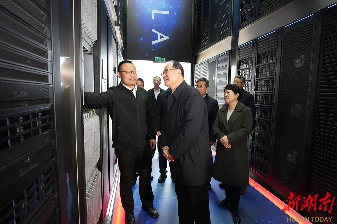 毛伟明在中国移动(湖南株洲)智算中心调研。 算力被称为人工智能的“发动机”和核心驱动力。湖南的算力建设情况如何?毛伟明对此十分关心。他先后来到国家超级计算长沙中心、长沙人工智能创新中心、中国移动(湖南株洲)智算中心考察。“十四五”期间,全省总算力达13000P、超算算力达228P、智能算力达4800P,分别是“十三五”末的21倍、36倍、32倍,其中国家超算长沙中心超算算力稳居全国第一方阵。此外,全省累计建成5G基站20.5万个。毛伟明指出,要聚焦未来所向、湖南所需、企业所盼,加快关键核心技术攻关,加强算力互联互通、供需对接、开放共享和生态适配,积极融入全国一体化算力网,不断提升算力供给能力和服务品质。