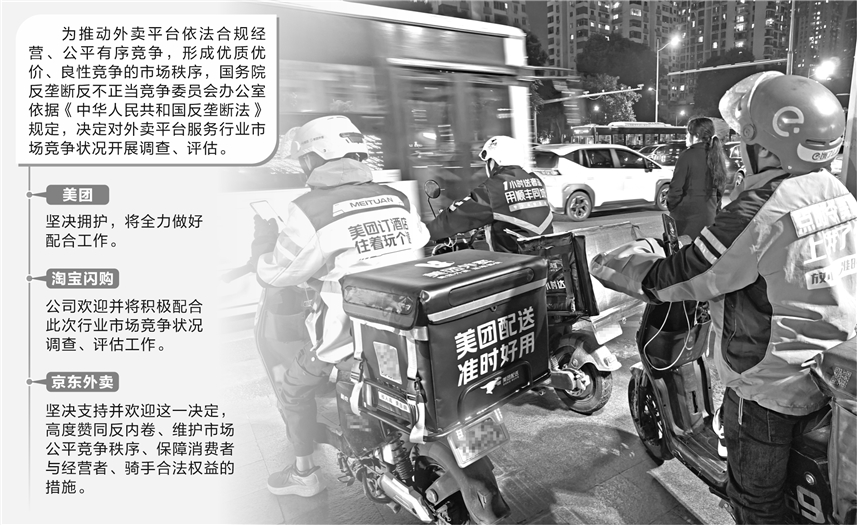证券时报记者 吴瞬 市场监管总局9日消息,国务院反垄断反不正当竞争委员会办公室近日依据《中华人民共和国反垄断法》,对外卖平台服务行业市场竞争状况开展调查、评估。 国务院反垄断反不正当竞争委员会办公室有关负责人表示,外卖平台服务行业作为我国平台经济的重要组成部分,在促进消费、扩大就业、推动创新等方面发挥了重要作用。但近段时间以来,外卖平台服务行业拼补贴、拼价格、控流量等问题突出,挤压实体经济,加剧行业“内卷式”竞争,社会各方面反映强烈。为推动外卖平台依法合规经营、公平有序竞争,形成优质优价、良性竞争的市场秩序,国务院反垄断反不正当竞争委员会办公室依据《中华人民共和国反垄断法》规定,决定对外卖平台服务行业市场竞争状况开展调查、评估。 国务院反垄断反不正当竞争委员会办公室将通过现场核实、当面访谈、问卷调查等方式,深入了解外卖平台竞争行为,广泛听取平台内经营者、新就业群体、消费者等各方意见,全面调查市场竞争状况,组织开展分析论证,传导监管压力,提出处置措施。 对此,三大外卖平台表态坚决拥护这一决定,并将全力做好配合工作。 美团表示,坚决拥护,将全力做好配合工作。近一段时间以来,外卖市场“拼价格、拼补贴、控流量”等非理性竞争问题突出。美团多次呼吁行业回归理性,坚决反对“内卷式”竞争。美团将以此次调查为契机,和行业内各平台一起,共同落实市场主体责任,公平参与市场竞争,促进外卖平台服务行业创新和健康发展。 淘宝闪购表示,公司欢迎并将积极配合此次行业市场竞争状况调查、评估工作,严格落实合规主体责任,持续与商户、生态合作伙伴等各方携手,提供更多元化、更高质量的服务,共同维护好公平有序的市场环境,合力推动外卖服务行业进一步繁荣发展。公司深知公平竞争是市场经济的核心原则,也是推动外卖平台服务行业持续创新与健康发展的基石。 京东外卖表示,坚决支持并欢迎这一决定,高度赞同反内卷、维护市场公平竞争秩序、保障消费者与经营者、骑手合法权益的措施。坚定不移地抵制行业内存在的“内卷式”恶性竞争,将通过供应链模式创新,大力推动品质外卖的高质量发展,更好地服务广大消费者、合作商家与骑手,促进外卖平台服务行业创新和健康发展。 早在2025年5月与7月,市场监管总局连续两次对三家外卖平台进行约谈,要求公平有序竞争、合法规范经营,共同营造良好市场环境。 外卖大战也令三家外卖平台大伤元气,2025年三季报显示,美团经调整后净亏损高达160亿元,而去年同期盈利达到128亿元。阿里巴巴归属于普通股股东的净利润209.9亿元,同比下降52%;非公认会计准则净利润为103.52亿元,同比下降72%。京东三季度财报显示,归属于普通股股东的净利润为53亿元,同比下降55%;调整后归属于普通股股东的净利润为58亿元,同比下降56%。值得一提的是,2026年1月8日,阿里巴巴在与投资者沟通中提出,阿里集团对于淘宝闪购2026年的投入战略明朗化,首要目标是份额增长,会坚定加大投入以达到市场绝对第一。 北京大学汇丰商学院副教授叶韦明此前在接受证券时报记者采访时表示,不正常的高额补贴对实体餐饮的冲击集中体现为从利润侵蚀到质量妥协的恶性循环。餐饮业本就面临高固定成本(租金、人力)与低需求弹性,平台补贴迫使商家陷入囚徒困境:不参与则流量断流,参与则毛利压缩至临界点,最终只能通过降低食材品质维持生存。 叶韦明指出,更深层的矛盾在于补贴成本转嫁机制。“这一问题需要高度关注,补贴究竟是谁出的?是平台出的?还是平台通过层层算法机制要求商家出的?如果是平台,那么平台依托算法权力(如动态定价、流量分配规则),将补贴压力层层传导至商家,形成隐性成本共担。例如,平台要求商家参与满30减15活动,表面是平台补贴,实则是通过压缩商家毛利(甚至要求商家自掏腰包补差额)实现。” |