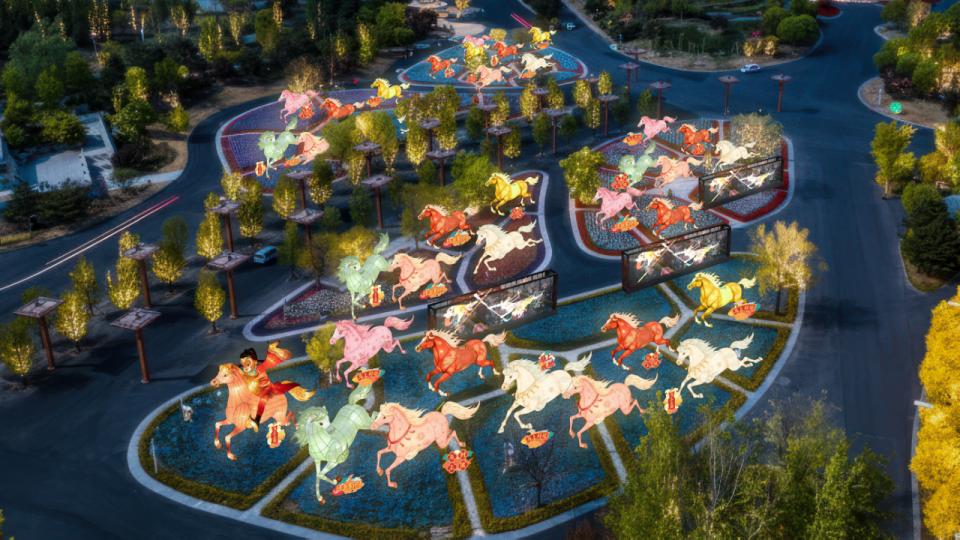 ▲万马苑造型花灯效果图 本次“天宫灯会”所有花灯仍旧采用传统自贡花灯技艺,从1月初,自贡花灯制作团队便开始紧锣密鼓筹备,目前所有灯组已完成半数制作,预计1月中旬起将陆续亮相。 无人机表演也将在本届灯会期间大放异彩。春节期间,预计将有3600架无人机腾空,展现《大闹天宫》动画中的经典情节。此外,世园还引入了混合现实MR技术,游客佩戴专业眼镜后可以看到神话中的场景在身边上演:齐天大圣与二郎神在中国馆上空斗法,如意金箍棒在眼前变大直插云霄;在植物馆,航空航天展引人入胜,“天宫一号”核心舱、火箭发动机、嫦娥六号等高精度还原的科技模型将展出,世园还将联动中国国家地理探索为广大小朋友带来大师讲座、科普展示活动。