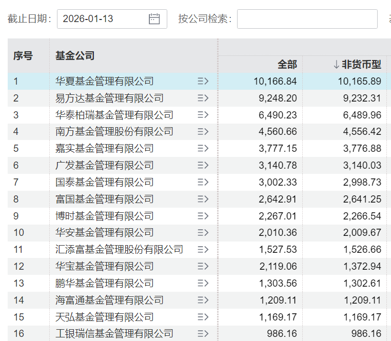 从规模体量看,当前逾6万亿元的ETF中,58家管理人分为三大梯队:一是华夏基金、易方达基金和华泰柏瑞基金,三家公司ETF总规模的市场占比超过40%;二是南方基金、嘉实基金等非货ETF规模在1000亿元以上、5000亿元以下的12家管理人;三是非货规模在千亿以下的40多家管理人。 从上述分布来看,中国ETF的马太效应依然显著。但万亿级别的ETF管理人刚出现,无论是总规模还是细分领域,中国ETF的发展前景依然被业内看好,尤其是在“亚太崛起、中国领跑”这一语境里。业内预计,随着ETF持续发展,未来将会出现更多“万亿”级的管理人,以及规模破万亿的ETF单品。 未来会有更多“万亿”管理人 根据Wind1月13日早间更新的数据,截至1月12日收盘华夏基金旗下ETF管理规模突破1万亿元,为1.02万亿元,是境内首家“万亿”ETF管理人。截至目前,境内ETF总规模约为6.27万亿元,来自58家管理人,仅华夏基金一家的管理规模,就占据了逾15%的市场份额。 华夏基金之后,ETF规模最大的是易方达基金和华泰柏瑞基金,目前ETF管理规模约为9248.20亿元和6490.23亿元。截至目前,这三家基金公司的ETF规模合计接近2.6万亿元,在全市场总规模中的占比超过40%,是58家基金公司中的第一梯队,也是最具规模优势的三家头部ETF管理人。 从2004年首只产品面世,到总规模于2020年10月首次突破1万亿元,到2023年8月出现首只规模破千亿元的股票品种(华泰柏瑞沪深300ETF),再到本次出现首家“万亿”管理人,境内ETF在行业层面已迈过了若干关键节点。特别是在刚过去的20205年里,ETF总规模接连突破4万亿元、5万亿元和6万亿元三大关口,实现“三级跳”,取代日本成为亚洲规模最大的ETF市场。 根据晨星此前公布的2025年三季度全球前20大ETF提供商名单,华夏基金和易方达基金均跻身其中。华夏基金以1268亿美元的ETF管理规模,位居第18名。易方达基金以1206亿美元的ETF管理规模,位居第19位。 基金公司的整体公募业务,规模占比以固收类基金为大头,但ETF规模中占据大头的是股票型品种。华夏基金目前逾万亿元的ETF规模中,有8000多亿元为股票型ETF。易方达逾9000亿元的ETF中,股票ETF规模则超过7600亿元。华泰柏瑞基金的ETF中,股票ETF规模也在5700亿元以上,其中仅华泰柏瑞沪深300ETF规模就超过4000亿元。业内预计,随着ETF持续发展,未来将会出现更多“万亿”级的管理人,还会出现规模破万亿元的ETF单品。 ETF规模格局的“三大梯队” 从规模分布来看,无论是单只ETF产品还是管理人旗下的ETF总规模,目前均呈现出明显的马太效应。从规模体量来看,这些ETF管理人可分为三大梯队。除上述第一梯队的三家ETF管理人外,还有以下两个梯队: