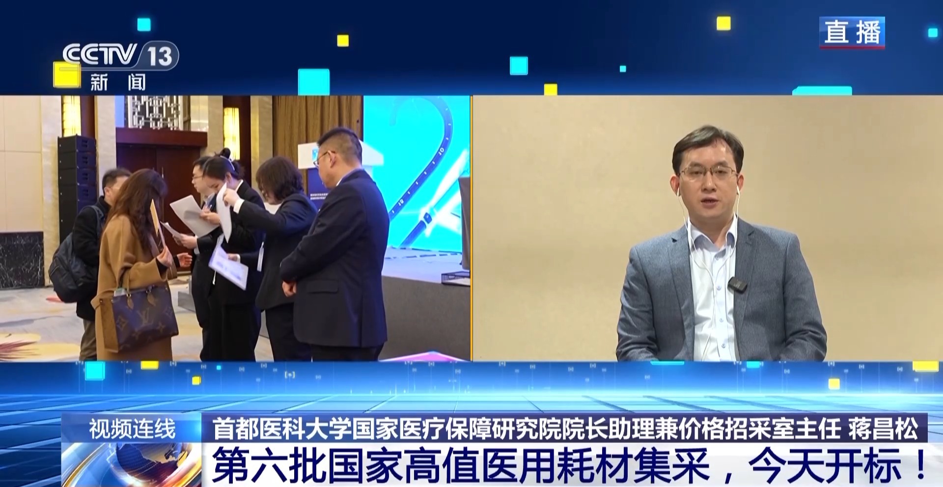除此之外,这次集采还设计了两个复活机制。按照采购文件的规定,在第一轮中虽然入围但没能中选的企业,可以通过一定流程重新报价,如果符合条件,就有机会在第二轮中选。这也给没中选的企业提供了重新竞争的机会。 哪些患者是最大的受益者? 首都医科大学国家医疗保障研究院院长助理兼价格招采室主任 蒋昌松:这两类耗材实际上都是微创介入类的耗材。一类是针对血管介入,包括冠脉和外周的血管,针对血管狭窄的一些患者。另外一类是针对泌尿结石为主的泌尿介入类耗材,受益的人群范围很广。另外,在集采的作用下,原来整个耗材的一些高额费用相信会有一个明显的下降。 引入“锚点价格机制”用意何在? 首都医科大学国家医疗保障研究院院长助理兼价格招采室主任 蒋昌松:“锚点价格机制”实际上是把大家的平均报价再乘以0.65倍,如果低于这个价格,就认为相对来说企业的报价可能偏低了,所以先把这个报价排除掉,用0.65倍再去做一个新的锚定,把中选的价格和中选率相对地提高。其实是减少个别产品的不合理低价,甚至是系统性影响整组产品的中选价格和中选率,是这样的设置。 它的初衷主要还是基于集采优化的一些原则,比如稳定临床、反内卷,让更多产品通过适宜的价格中选,来供应、丰富临床的选择,达到反内卷的目的,让价格合适,让企业更多地中选。 国家高值医用耗材质量如何不打折? 首都医科大学国家医疗保障研究院院长助理兼价格招采室主任 蒋昌松:实际上每一个人都可能是患者,除了价格的合理降低以外,质量是大家最关心的问题。 能够参加本次集采的496个产品,全部是通过了药监部门的审批,而且是常态化的监管,所以在前端的审批和上市是有质量保证的。可能大家更关心的是集采降价之后产品的供应和质量问题能不能够继续保证,中国是医疗器械制造的大国,从2018年我们的生产企业数量从15000多家增加到了现在的30000多家,翻了一倍。整个产值规模也从5000多亿增长到现在的13000多亿。从各个方面的角度看,整个医疗器械的制造能力、科研能力大幅上升。对于每家企业自己产品的质量、信誉的保证,都达到了前所未有的重视程度。