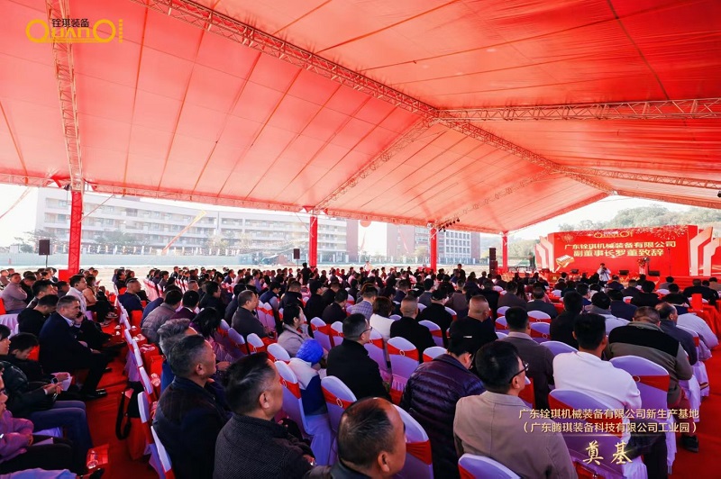 此次奠基盛典既显产业盛事的庄重感,又饱含传统庆典的喜庆氛围与人文底蕴。三水区委常委、统战部长、区政协党组副书记黄聪等政府领导亲临指导,与来自全国各地的600余名行业合作伙伴、企业代表及同仁们齐聚一堂,共赴这场产业盛会,见证企业发展关键节点。上海有色网信息科技股份有限公司(SMM)在此恭贺,祝愿铨琪装备新基地奠基圆满成功,产能升级再启全新篇章! 庆典伊始,祈福礼拜、红包派送、金猪分切等传统仪式依次上演,醒狮点睛、采青纳福环节更将喜庆氛围推向高潮,为新厂建设凝聚满满福气与美好期许。现场宾朋满座、举杯同庆,在共话情谊的同时,也通过动态视频全景领略了新基地的前瞻设计理念。据介绍,新工业园采用双层立体布局,除核心生产区域外,还配套建设现代化办公大厦、员工宿舍等完善设施;同时将绿色环保理念贯穿建设全程,着力打造高绿化覆盖率的生态厂区,建成后将形成功能完备、景致优美、动线流畅的现代化产业园区,为研发生产与员工工作生活提供高品质保障。
