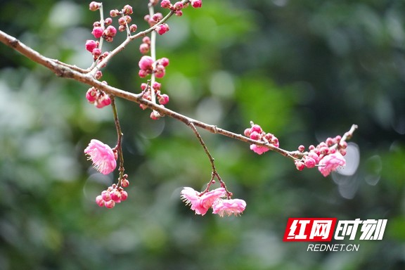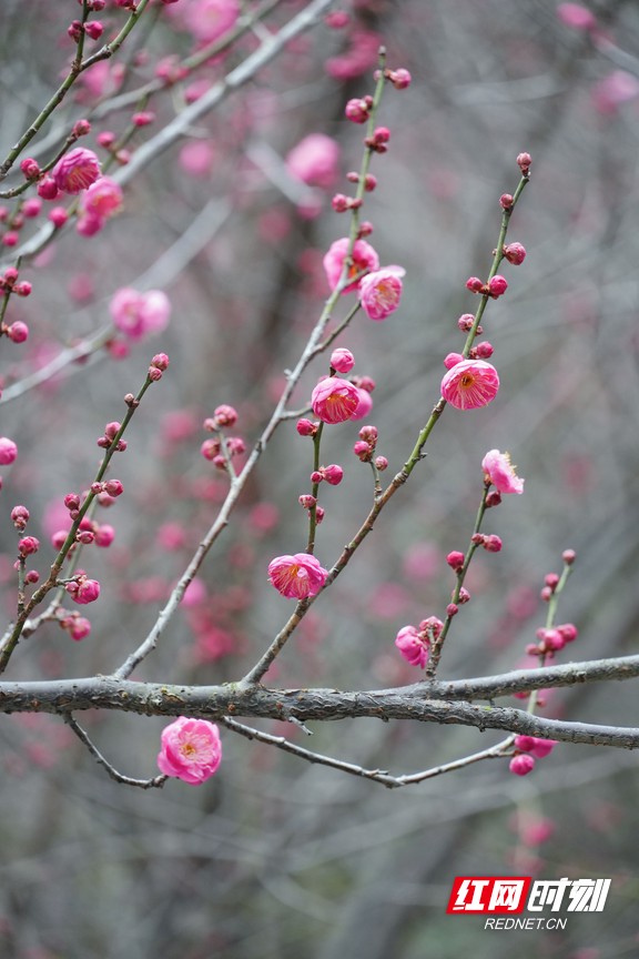 梅花次第开放。 红网时刻新闻1月14日讯(记者 王新凤 实习生 全金秀 王晶 高爽)小寒已过,衡阳营盘山公园的红梅已悄然展露芳容。近日,记者在现场看到,多株红梅树迎来初花期,粉嫩的花瓣点缀在遒劲枝桠间,为雁城的冬日画卷添上了一抹灵动亮色。 步入营盘山公园的梅苑广场,红梅树错落有致地分布其间,正是赏梅的核心区域。抬眼望去,密密匝匝的花蕾缀满枝头,有的已然舒展花瓣,露出粉嫩的花蕊,微风拂过,淡淡的幽香沁人心脾;有的仍含苞待放,如胭脂凝成的珠玑,透着几分娇俏,吸引不少市民驻足流连,或举着手机拍照留念,或凑近花枝轻嗅梅香,享受这独属于冬日的雅致景致。 据了解,园内红梅尚处于初绽阶段,预计2月上旬至春节前后将进入盛花期,届时成片红梅次第开放,花期可持续一个月左右。晴好天气下,红梅色彩更为明艳,观赏效果最佳,而低温天气则可能延长花期,为市民提供更长的赏梅窗口。 营盘山公园全天免费开放,是衡阳本地颇受欢迎的赏梅打卡点。公园提醒广大市民,赏梅时请文明游览,切勿攀折花枝、摇晃树干,共同呵护这份冬日美景,让红梅的芬芳能惠及更多游人。 |