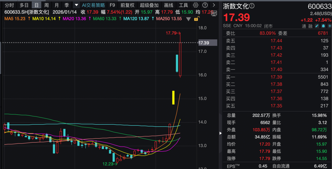浙数文化1月14日盘中触及涨停,收盘涨超7%,年初至今其累计涨幅达到35%。1月14日晚间,浙数文化公告表示,公司不涉及GEO业务。目前,公司相关子公司的主营业务为数字营销服务和广告代理服务等,不涉及公告所描述的GEO业务。