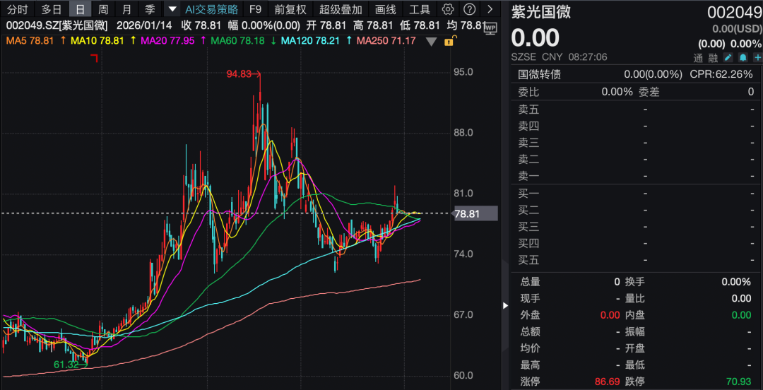 根据紫光国微此前公告,公司正在筹划以发行股份及支付现金的方式,购买南昌建恩半导体产业投资中心(有限合伙)(以下简称“南昌建恩”)、北京广盟半导体产业投资中心(有限合伙)(以下简称“北京广盟”)、天津瑞芯半导体产业投资中心(有限合伙)(以下简称“天津瑞芯”)等交易对方持有的瑞能半导体科技股份有限公司(以下简称“瑞能半导”)控股权或全部股权,并募集配套资金事项。 1月14日披露的交易预案显示,紫光国微拟以发行股份及支付现金的方式向南昌建恩、北京广盟、天津瑞芯、建投华科等14名交易对方,购买其合计持有的瑞能半导100%股权。交易完成后,瑞能半导将成为公司全资子公司。 截至预案签署日,瑞能半导的审计和评估工作尚未完成,标的资产评估值及交易作价尚未确定。最终交易价格将以资产评估机构出具的评估结果为基础,经交易各方协商确定,并在重组报告书中予以披露。 紫光国微是国内主要的综合性集成电路上市公司之一,以特种集成电路、智能安全芯片为两大主业,同时布局石英晶体频率器件等领域,为移动通信、金融、政务、汽车、工业、物联网等多个行业提供芯片、系统解决方案和终端产品。 此次交易拟收购的标的公司瑞能半导是一家拥有芯片设计、晶圆制造、封装设计和模块封装测试的一体化经营功率半导体企业,主要从事功率半导体的研发、生产和销售,产品主要包括晶闸管、功率二极管、碳化硅二极管、碳化硅MOSFET、IGBT及功率模块等,广泛应用于消费电子、工业制造、新能源及汽车等领域。 紫光国微表示,瑞能半导主要产品的电气性能处于国际领先水平,并已在行业中形成一定市场地位优势。 紫光国微称,此次交易前,在功率半导体细分领域,公司虽有一定技术储备与市场应用,但尚未形成规模化、体系化的业务布局。通过本次交易,公司可整合功率半导体产品矩阵,快速补齐制造环节,完善半导体产业链布局,进一步巩固现有行业优势地位,增强公司在半导体产业的综合竞争力。 紫光国微此前于2025年12月30日(星期二)开市起停牌。停牌前公司收盘价为78.81元/股,市值约670亿元。交易预案披露后,紫光国微股票将自1月15日开市起复牌。