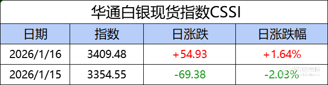 华通白银网1月16日讯: 华通白银现货指数CSSI走势日报,今日指数3409.48,日涨
