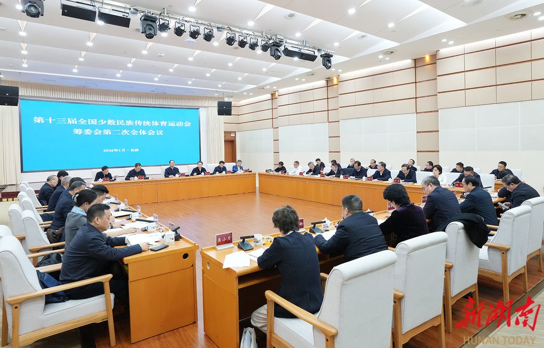 会议现场。 毛伟明强调,要高质高效做好筹备工作。第十三届全国少数民族传统体育运动会,是我省承办全国性综合体育赛事的“首秀”。要始终遵循“平等、团结、拼搏、奋进”的办赛宗旨,把握好“民族团结的盛会、群众体育的盛会”的赛会定位,真正体现运动会的群众性、文化性和时代性。高效务实抓筹备。按照“节俭办会”“务实办会”要求,加快选址进度、审批进度和项目进度,主动做好服务、前置审查,依法依规“特事特办”“急事急办”,提速场馆改造提升和维修维护,确保场馆功能全面满足赛事要求。精准精细抓筹备。凸显民族团结主题,充分融入湖南特色、湖湘文化,全面展示时代风貌、发展变化,精心打造开闭幕式、做好赛事组织、开展活动策划,力争打造一批展示湖湘民俗魅力、体现民族交融氛围、弘扬中华体育精神的精品佳作。营造氛围抓筹备。紧扣铸牢中华民族共同体意识主线,充分借鉴“湘超”等赛事成功经验,进一步浓厚赛事氛围、扩大赛事参与,广泛动员社会各界特别是各民族积极参与主题口号、形象设计等策划工作。安全有序抓筹备。坚持安全办会、廉洁办会、和谐办会,紧盯各领域、各环节风险点,研究细化工作方案和应急预案,健全舆情监测、研判、处置闭环机制,确保运动会筹备工作安全、平稳、有序。