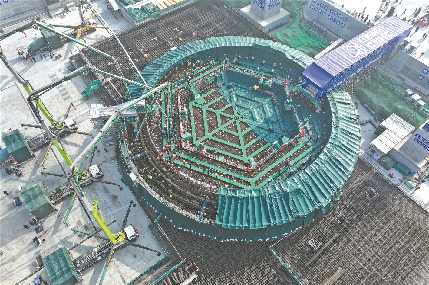 1月16日,位于江苏省连云港市的江苏徐圩核能供热发电厂1号机组核岛开始混凝土浇筑,项目进入主体工程建设阶段。这是“十五五”开局之年我国开工建设的首台核电机组。新华社记者 毛俊/摄
