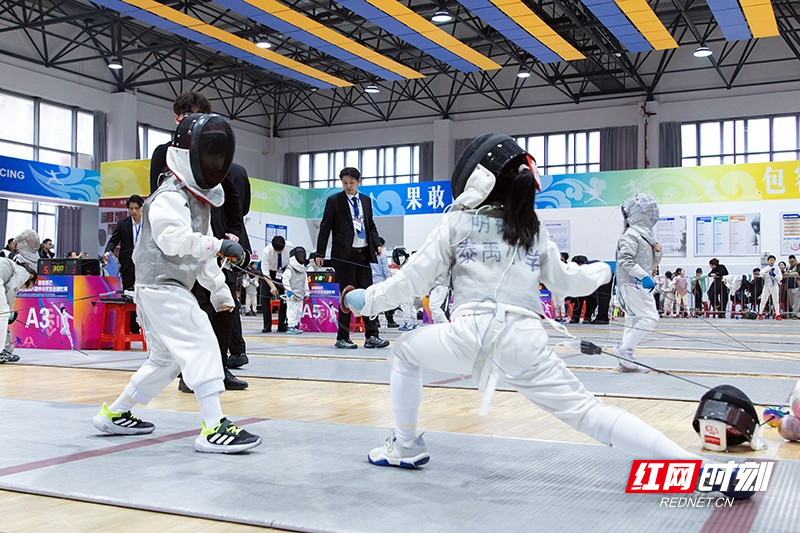 “小剑客”赛场对抗。 该赛事是雨花区“全员文体”品牌活动。各中小学通过击剑社团、班级比赛和校队竞技等“以赛代练”模式,近三年培养了12名全国冠军和40余名省市级冠军,成为区域选拔击剑人才、营造体育氛围的重要平台,助力雨花区发展为全国青少年击剑人才摇篮。 比赛举办地中雅培粹双语中学,是长沙市击剑队雨花区训练基地,自2023年9月创立击剑特色项目以来,学校积极响应雨花教育“全员文体,健康第一”的号召,短短两年多已斩获国家级赛事奖牌7项、省市级30项佳绩。