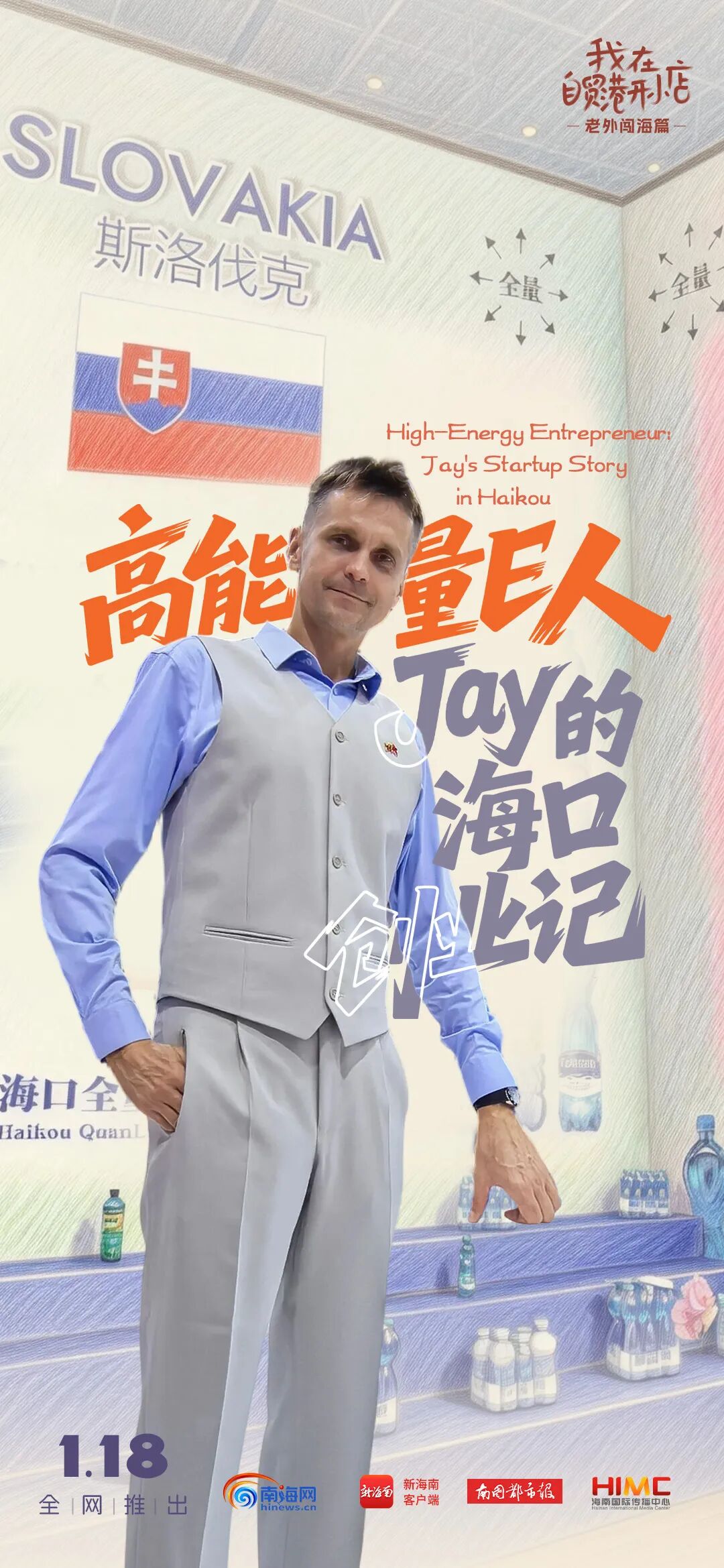 在自贸港开小店,是一种什么体验? 2025年12月18日 海南自贸港正式启动全岛封关 海南的大门向世界敞开 越来越多的外籍创业者勇闯海南 在这片热土上落地生根、茁壮成长 与时代共创着新的“海的故事” 2026年1月18日 海南自贸港封关运作迎来“满月” 海南省融媒体中心推出系列微纪录片 《我在自贸港开小店·老外闯海篇》 第二集《高能量E人Jay的海口创业记》 带你看斯洛伐克人 Jay在海南的奇遇人生