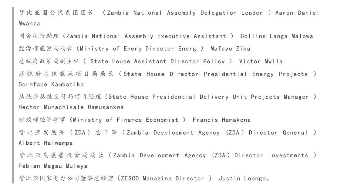 SMM1月19日讯: 1月17日,由赞比亚国会、能源部、财政部、赞比亚国家电力公司(ZESCO)等核心部门组成的高级别代表团,在赞比亚国会代表团团长 Aaron Daniel Mwanza 的带领下一行 10 人,到访上海有色网信息科技股份有限公司(SMM)。代表团受到SMM首席执行官卢嘉龙、海外营销总监管越捷等公司管理层的热情接待,双方围绕能源矿产领域招商引资合作、国际平台资源对接等核心议题开展友好磋商。此次访问是赞比亚与 SMM深化行业交流的重要契机,既彰显了赞比亚依托国际专业平台推动本土产业发展的积极意愿,也为双方在能源矿产领域的合作注入全新探索动能。 赞比亚高级别代表团考察团成员名单