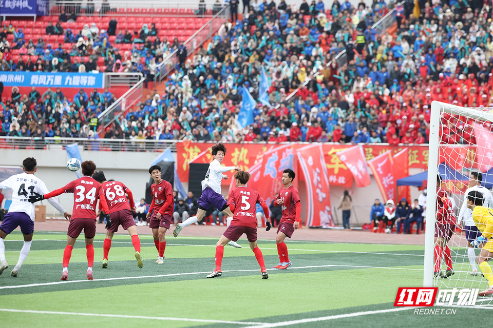 红网时刻新闻1月19日讯(记者 陈杰)1月19日,永州市体育场,双方球员在比赛中展开激烈拼抢。当天,2026年CMG群众足球邀请赛进行B组第一场比赛,来自南粤的广东湛江队与草原雄鹰内蒙古呼和浩特队展开激烈角逐,最终,广东湛江队2比0胜内蒙古呼和浩特队。