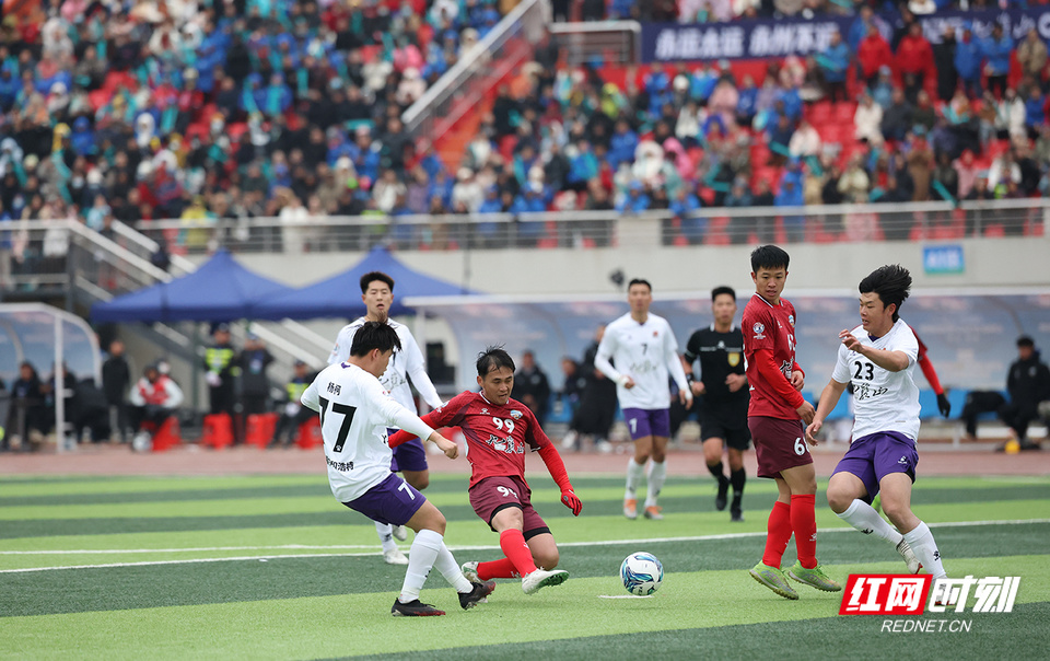 红网时刻新闻1月19日讯(记者 陈杰)1月19日,永州市体育场,双方球员在比赛中展开激