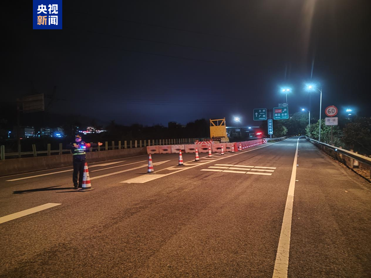 △路政员协助交警完成交通管制车道封闭 为保障道路通行安全,京珠北高速部分路段于1月20日19时起正式启动临时交通管制,其中梅花站往广州方向实施出口分流、入口封闭,大桥站往湖南方向同步采取出口分流、入口封闭措施,过往车辆可绕行乐广北高速通行。