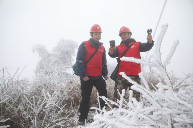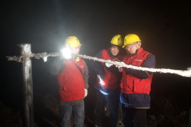(工作人员夜间在天堂山110千伏印天线117号塔监测模拟导线覆冰厚度。汪继生摄) 1月20日凌晨,常宁天堂山海拔1260米处,气温低至零下5℃。国网衡阳供电公司输电检修公司负责人李国恒带着两名员工背着监测装备,每2小时到塔下监测一次冰情。3时20分,110千伏印天线导线覆冰12毫米,直流融冰正式启动。经过4个多小时彻夜操作,线路覆冰全部消融。 35千伏武天线是张家界天子山景区用电的“生命线”。20日上午,在该线路一处观冰哨所外,积雪已没过脚踝。国网张家界供电公司输电运检二班员工张富立、覃左臣精准记录线路覆冰情况,筑牢景区电网安全运行“防火墙”。 在石门县壶瓶山区,电力线路覆冰速度快。壶瓶山供电所已提前恢复24小时值班值守,全员坚守岗位待命,利用夜间用电高峰期进行红外测温和特巡,切实保障山区群众供电可靠。