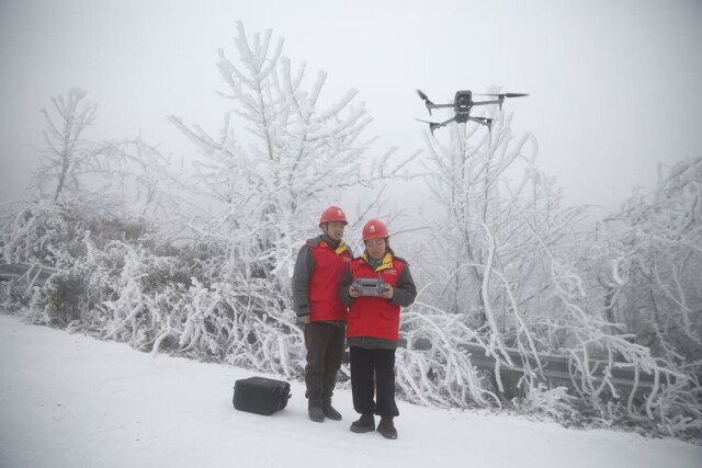 (1月20日,国网湘西供电公司(国强)东方红共产党员服务队冒着零下7摄氏度的寒冷天气,在龙山县大安乡翻身村对10千伏大翻线团结支线开展观冰特巡。田良东摄) 在安化县±800千伏中衡特高压线路监测现场,国网湖南超高压输电公司利用无人机巡航、北斗高精度形变监测等先进技术,实现对输电线路覆冰厚度与形态的精准实时感知,为科学开展融冰除冰决策提供了关键技术支撑。