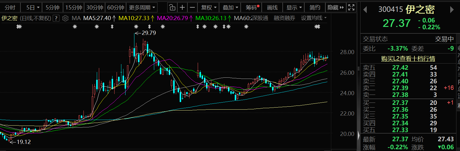 1月21日,伊之密的股价出现小幅下跌,截至1月21日10:30分,伊之密跌0.22%,报27.37元/股。