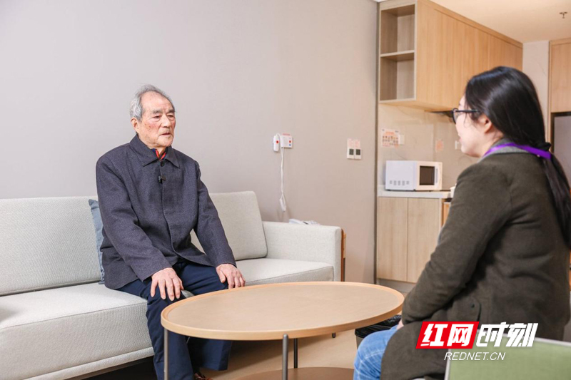 肖叔叔(左)向红网时刻新闻记者分享入住湘园的体验。 泰康人寿湖南分公司副总经理姜琦介绍,2022年3月20日,泰康之家·湘园正式开业,总投资约29.5亿元,可提供约2150个养老单元,配建了一家二级康复医院,实现“养老+医疗”的无缝衔接。