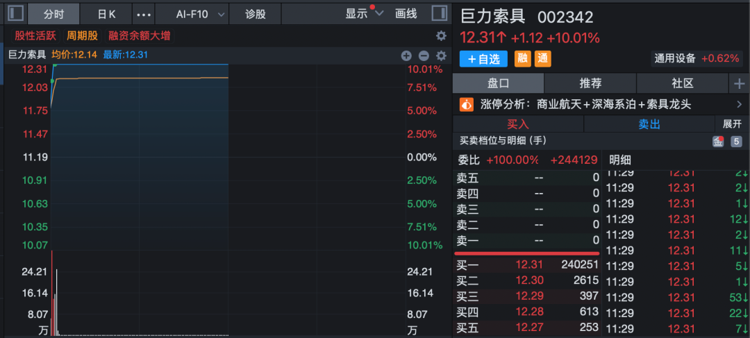 美国寒潮推升天然气期货价格暴涨,隔夜NYMEX天然气价格飙升逾29%,今日早间,NYMEX天然气价格继续攀升,截至发稿再度上涨逾9%,近4个交易日合计大涨逾72%。 据美国国家气象局最新消息,对多地发布“危及生命的严寒”警告。一股来自加拿大的极地寒流正快速南下,并将与被命名为“风暴·费恩(Storm Fern)”的系统叠加,给全美大范围地区带来创纪录低温、暴雪、冻雨与大面积停电风险。 此外,欧佩克日前发表声明称,由于季节性因素,决定在2026年2月和3月暂停增产步伐,产量与2025年12月及2026年1月保持相同。声明还说,为维护石油市场稳定,将根据市场情况灵活调整增产节奏。 国金证券称,拉尼娜现象发生概率提升,或导致冬季北半球气温骤降,当前欧洲天然气库存中位水平,若出现冷冬或推升天然气价格,建议关注上游天然气生产相关标的。 国防军工再度走强 经过短暂调整之后,国防军工股今日早盘再度全线走强,航天装备方向领涨,板块指数大涨近5%。怡亚通约2分钟垂直涨停,长城电工、九鼎新材等均在5分钟之内直线涨停。