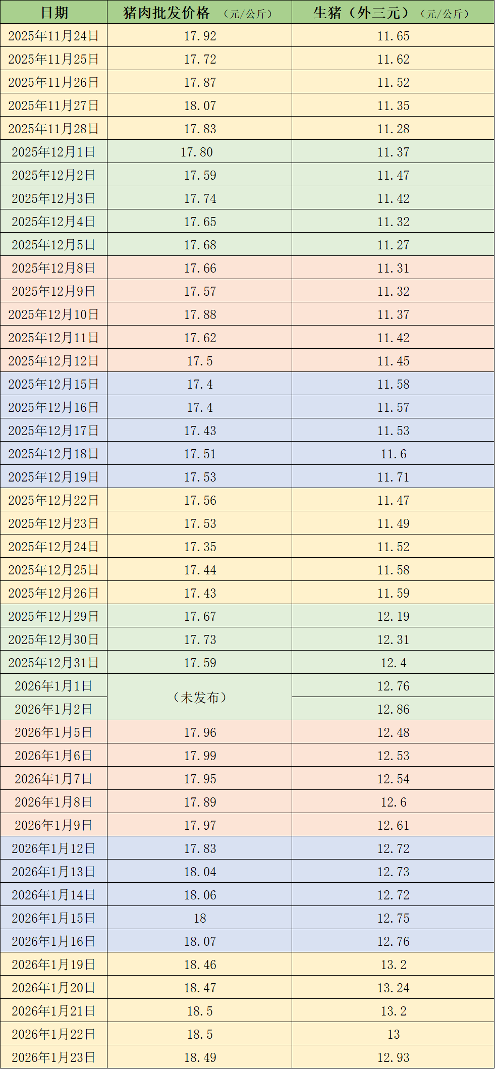 据农业农村部监测,1月23日,全国农产品批发市场猪肉平均价格为18.49元/公斤,与上周五(1月16日)的18.07元/公斤相比,上涨2.3%。本周的平均价格为18.5元/公斤,与上周18元/公斤的均价相比,上涨2.8%。 本周国内生猪价格呈先涨后降走势,周均价环比上涨。据中国养猪网的数据,1月23日,生猪(外三元)价格为12.93元/公斤,与上周五(1月16日)的12.76元/公斤相比,上涨1.3%。从一周均价来看,本周生猪均价为13.11元/公斤,与上周12.74元/公斤的均价相比,上涨2.9%。 ![]() 近期的猪肉和生猪价格。 本周全国生猪交易均重微跌。卓创资讯监测全国生猪平均交易体重为124.50公斤,环比微跌0.06%。本周分省份交易均重北跌南涨。北方前期养殖企业普遍超卖,随着生猪逐步上市被消化,出栏均重下滑,同时大猪存栏下降,且周内多地强降雪降温导致肥标价差走阔,大猪采购成本偏高,屠企多加大对低价标猪采购,收购均重同步回落。受北方猪价反弹影响,南方养殖端亦存看涨等价情绪,部分主动提价压栏,部分跟涨但消化乏力,普遍被动压栏,交易均重普遍上涨。本周国内生猪重点屠宰企业开工率环比下降,周内平均开工率40.88%,较上周下降0.42个百分点。本周生猪价格高位运行,屠宰端生猪采购成本压力较大,且高价生猪亦使得白条价格处于高位,市场对高价白条的接受度持续降低,屠宰企业订单减少,屠宰量及开工率下滑。 1月24日,国家统计局发布2026年1月中旬流通领域重要生产资料市场价格变动情况。其中,生猪(外三元)价格为12.9元/公斤,与1月上旬相比,每公斤上涨0.4元,上涨幅度为3.2%。 华西证券认为,节前消费旺季,猪价抬升,养殖扭亏为盈,短期不利于产能去化,节后为猪肉消费传统淡季,且2025年三季度能繁母猪存栏量仍大于正常保有量,产能有望加速去化。 大地期货认为,短时周末叠加腊八备货给到现货端一定支撑,从出栏表现看仍有惜售缩量表现,盘面也有所止跌调整。而距离春节的有效出栏时间越来越短,企业或将开始进入降重增量阶段,社会大猪也面临陆续的释放,旺季猪价上方预计存压。往后看春节后理论供给仍在相对高位。能繁年末数据表现相对不及市场预期,叠加当前养殖端利润再度回正,产能去化加速仍待验证。 卓创资讯预计未来一周全国行情或呈上涨再小跌态势。供应方面,养殖端或在周末备货阶段提价出猪,对行情有支撑作用。但下旬整体出栏量或增加,对后期行情形成利空影响。需求方面,周末市场或有备货动作,加之腊八过后市场需求或小幅提升,需求对行情有一定支撑作用,但需求增幅或小于供应增幅,因此行情或仍然偏弱。 (文章来源:澎湃新闻) |