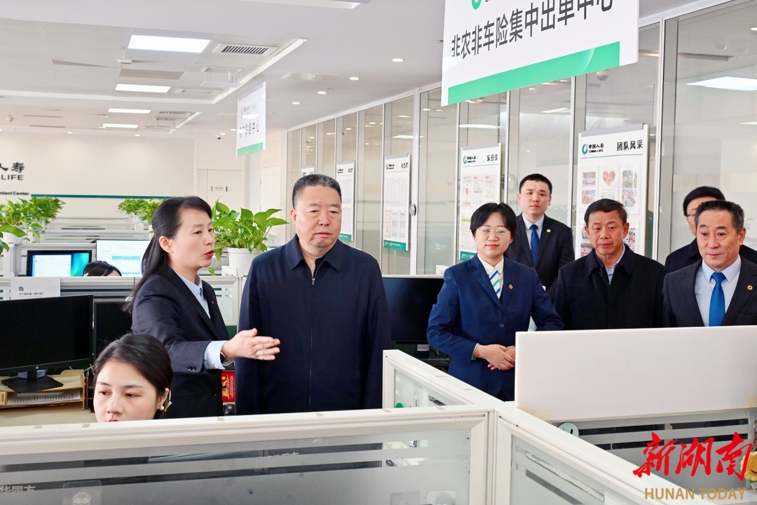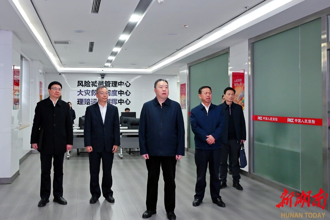 1月23日至24日,省政协主席毛万春率队在中国人民财产保险股份有限公司湖南省分公司和中国人寿财产保险股份有限公司湖南省分公司调研。图为毛万春在人保财险湖南分公司理赔灾害调度指挥中心调研。 人保财险湖南分公司是湖南省内设立的首家财产保险公司。毛万春一行考察了公司理赔灾害调度指挥中心,详细了解风险减量管理、房屋安全动态监测、车险理赔服务、气象灾害风控服务等方面的创新做法。