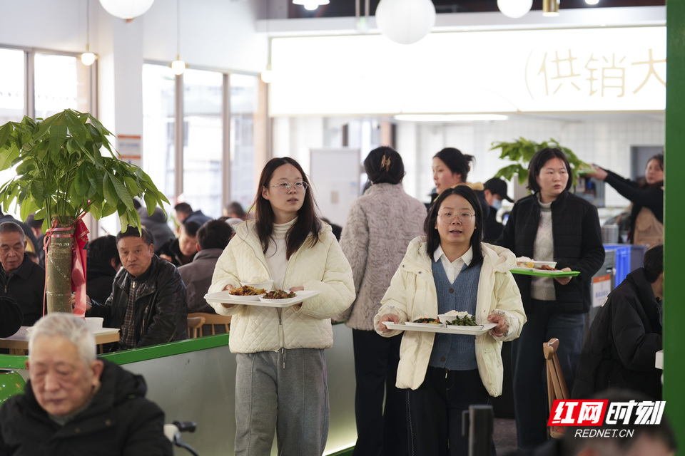 早上八点半到十点,晚上六点半到八点,是售货员申丹最忙的时候。她说,这里的东西质量好,价格合适,来买菜的主要是老年人。 湘供集市按“以市场性为主,兼顾公益性”来经营,和百善台社区一起弄了“社区食堂”和“便民服务”。食堂给周边居民提供实惠的日常饭菜,特别是给60岁以上的老人准备了营养又优惠的餐食。便民服务站则提供改衣服、配钥匙、修鞋修包这些“小修小补”的服务,价格低,有的甚至免费。