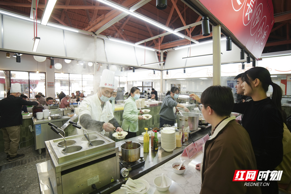 一年前,这里还是长沙弹簧厂闲置的旧厂房,光线昏暗,少有人至。如今,“湘供集市”的招牌挂了起来,机器的轰鸣声早已消散,取而代之的是碗筷轻碰声、邻里说笑声、孩子玩闹声。 老厂房,被另一种更日常、更温暖的声音填满了。